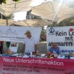 29. September 2018: bundesweiter CETA-Aktionstag, auch in Konstanz. Mit dabei: attac Singen, BUND Konstanz, Weltladen Konstanz, Seebrücke Konstanz, Initiative Foodsharing, StadtPlan Zukunft, die Linke Liste, Café Mondial.