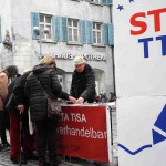 28. März 2016: Auf dem Bodensee-Ostermarsch in Romanshorn waren die Handelsabkommen CETA, TiSA und TTIP ebenfalls ein Thema.