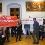 12. Januar 2016: Protestaktion des Konstanzer Bündnisses gegen den TTIP-Befürworter und baden-württembergischen Ministerpräsidenten Winfried Kretschmann beim Bürgerdialog der grünen Landtagsfraktion in Konstanz: