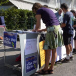 31. August 2024: Unterschriftensammlung für die Europäische Bürgerinitiative Tax The Rich und die Petition gegen die geplante Aufhebung der bisherigen Gentech-Regeln in der EU. Auf dem Wochenmarkt in Konstanz-Petershausen.