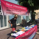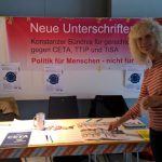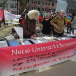 29. September 2018: bundesweiter CETA-Aktionstag, auch in Konstanz. Mit dabei: attac Singen, BUND Konstanz, Weltladen Konstanz, Seebrücke Konstanz, Initiative Foodsharing, StadtPlan Zukunft, die Linke Liste, Café Mondial.