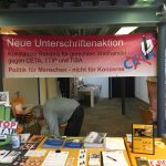 10. Juni 2018: Infostand im kommunalen Weitwinkel-Kino (Singen) bei der Vorführung des Films „System Error“