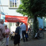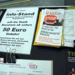 Nachdem wir bei allen Gemeinderatsfraktionen vorstellig geworden waren, machten Verwaltung und OB Burchardt einen Rückzieher. Auch künftig fallen für Initiativen wie die unsere keine Standgebühren an, sondern nur Verwaltungsgebühren für die Standgenehmigung.