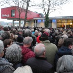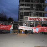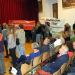 15. Februar 2016: Unsere Transparente bei einer Wahlkampfveranstaltung von Angela Merkel im Milchwerk Radolfzell