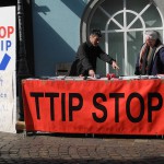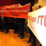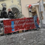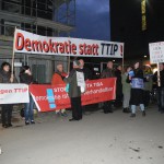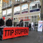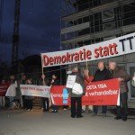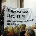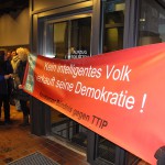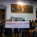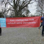 12. Januar 2016: Protestaktion des Konstanzer Bündnisses gegen den TTIP-Befürworter und baden-württembergischen Ministerpräsidenten Winfried Kretschmann beim Bürgerdialog der grünen Landtagsfraktion in Konstanz: