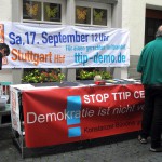 Über den Infostand zu CETA und TTIP sowie die lang andauernde Kontroverse über die völlig überzogenen Standgebühren der Stadt Konstanz berichtete der „Südkurier“ so: