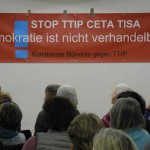 In Kooperation mit der VHS Konstanz veranstalteten wir mit Andreas Zumach, freier Journalist in Genf, einen Abend zu den Freihandelsabkommen und insbesondere zu TiSA, dem geplanten Dienstleistungsabkommen. Über hundert Menschen besuchten die Veranstaltung.