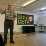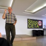 – Bei TiSA geht es vor allem darum, den Neoliberalismus dauerhaft zu zementieren, also Änderungen hin zu einer gerechteren Gesellschaft künftig zu verhindern. Das ist auch deswegen möglich, weil der TiSA-Vertrag – falls er durchgesetzt wird – völkerrechtlich bindend ist, also über dem Grundgesetz steht.