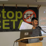 Johannes Lauterbach von der Colibri-Initiative „für eine menschenwürdigere Welt“ erläuterte die Grundzüge für ein „Alternatives Handelsmandat„, das vor Jahren erarbeitet wurde. Etwas in der Versenkung verschwunden könnten (und müssten) die guten Ansätze für eine faire, nachhaltige, solidarische, soziale und ökologische Handelspolitik im Zuge der breiten TTIP-Bewegung wieder in die öffentliche Diskussion kommen. Lauterbachs Power-Point-Präsentation steht hier: Vortrag_Lauterbach_in_Konstanz