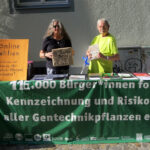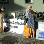 2. August 2024: Infostand auf dem «Gassenfreitag» in der Konstanzer Niederburg – Sammlung von Unterschriften für die Gentechnik-Resolution der Arbeitsgemeinschaft bäuerliche Landwirtschaft (gegen die von der EU geplante Deregulierung der Kennzeichnungspflicht und Anbauregeln von gentechnisch veränderten Organismen).